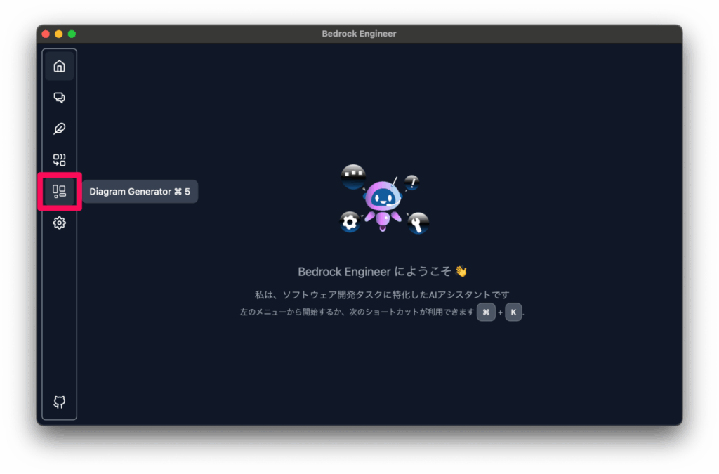 画面左のメニューアイコンから「Diagram Generator」のマークを選択すると、Diagram Generator 画面に遷移します。