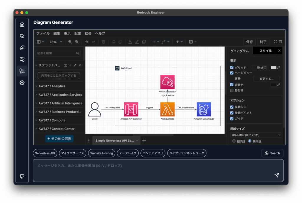AWS の AI エージェント、Bedrock Engineer の「Diagram Generator」で構成図自動生成を試してみた