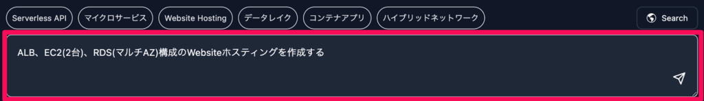画面下部のメッセージ入力フィールドに以下の内容を入力し、構成図を生成してみます。