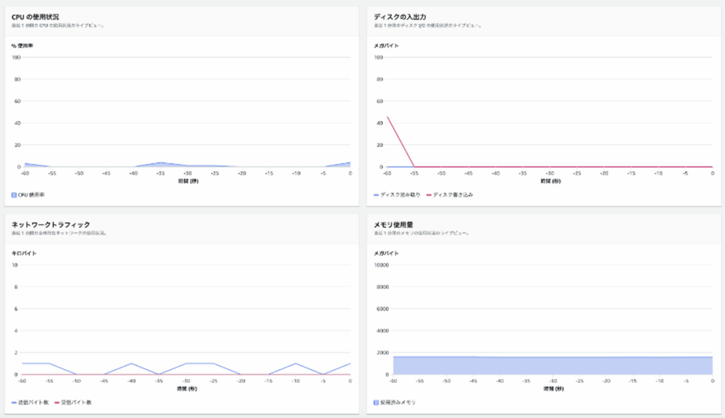 CPU、メモリー、ディスク使用率を可視化し、CloudWatchなどと統合して詳細なモニタリングが可能です。