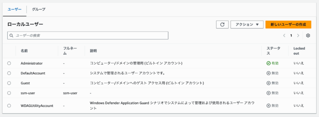 インスタンス内のユーザーアカウントの一覧を表示し、アカウントの有効化・無効化を行えます。