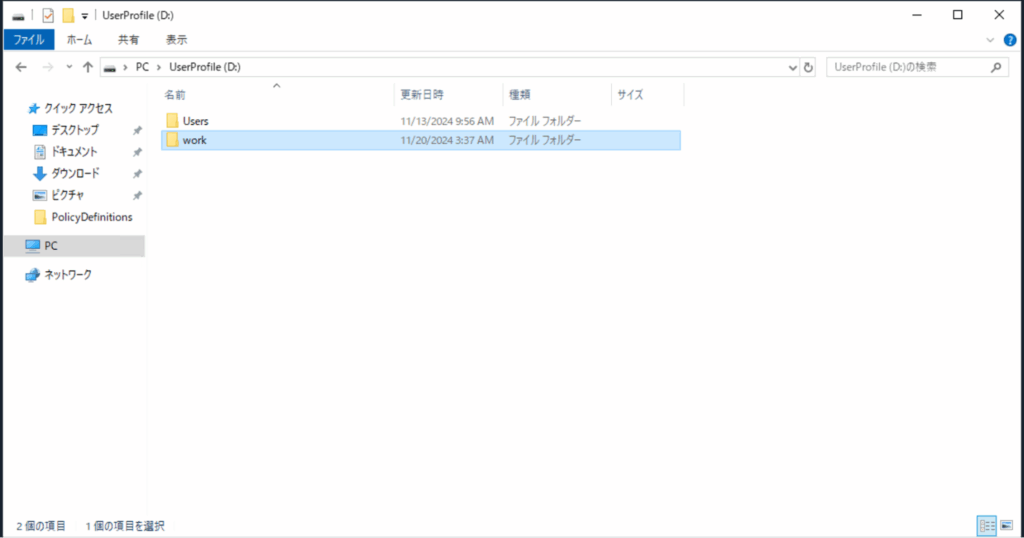 本ブログでは、D:\workとします。