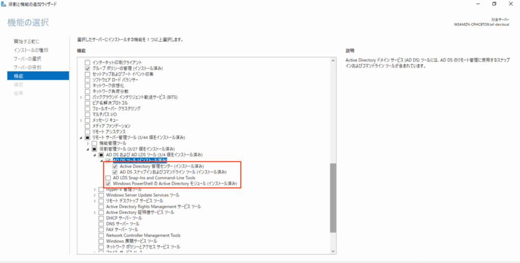 本ブログでは実施してないですが、不要でしたらインストールしたAD管理ツールも削除ください。