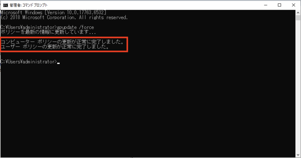 [コンピューター ポリシーの更新が正常に完了しました。