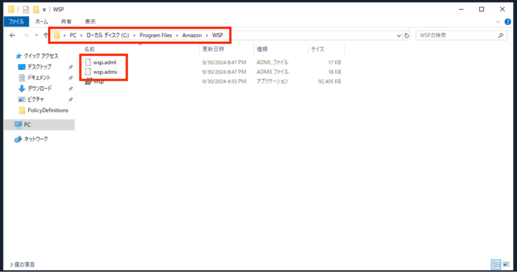 ※[PolicyDefinitions]フォルダが存在しない場合は作成します。