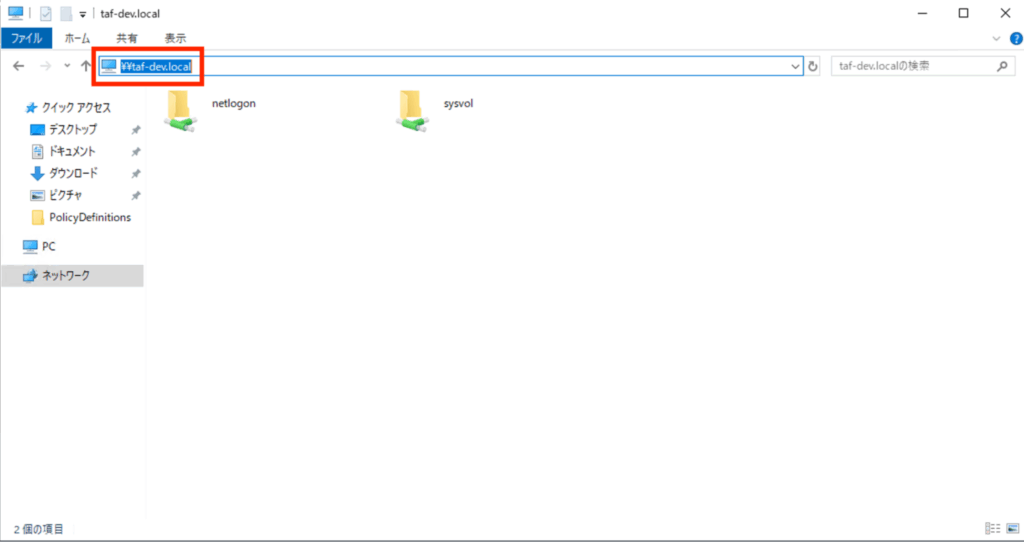 本ブログでは、[\\taf-dev.local\sysvol\taf-dev.local\Policies\PolicyDefinitions]