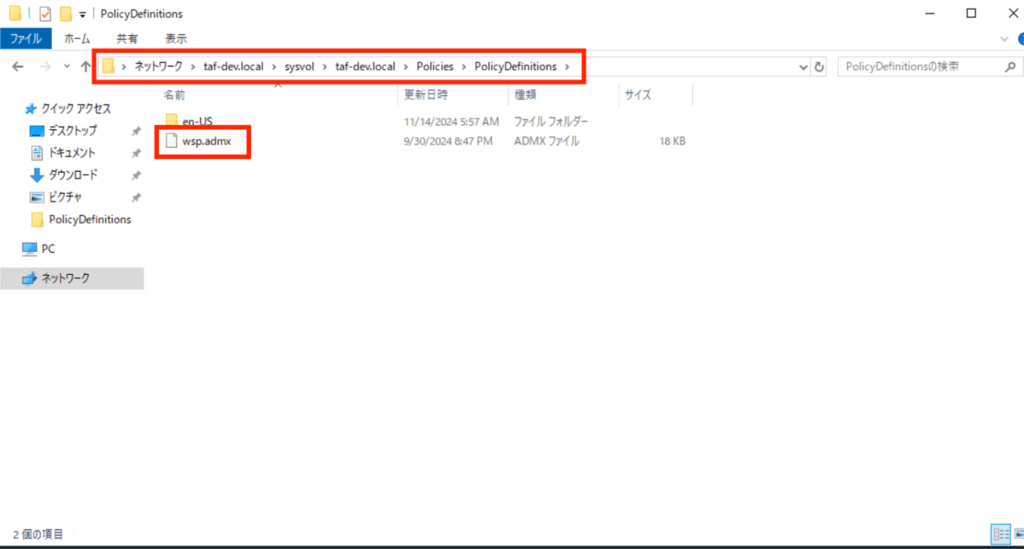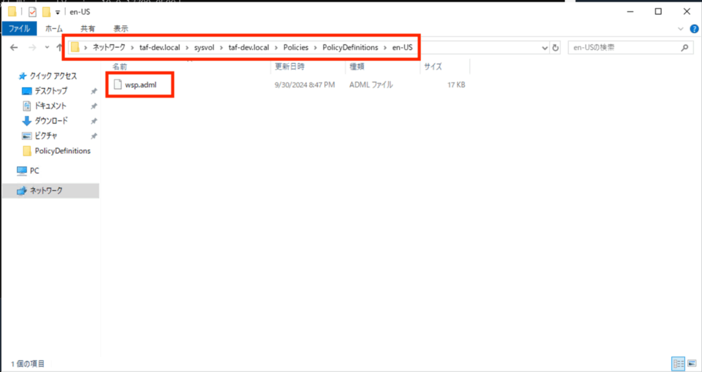 本ブログでは、[\\taf-dev.local\sysvol\taf-dev.local\Policies\PolicyDefinitions\en-US]