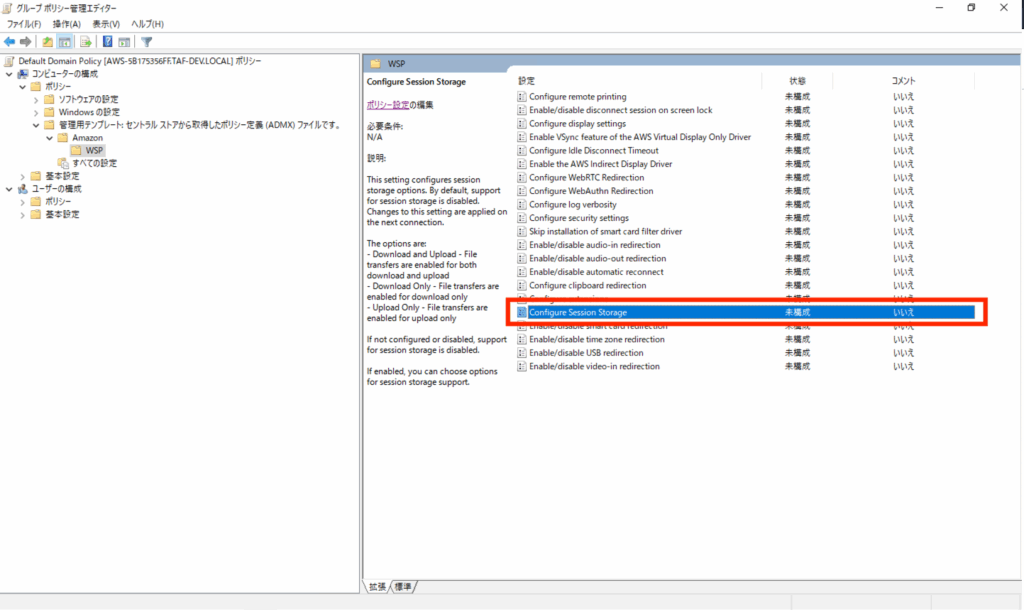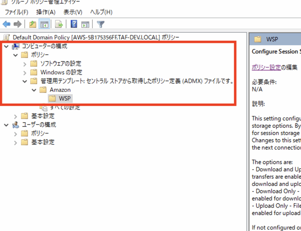 コンピュータの管理\ポリシー\管理用テンプレート\Amazon\WSP