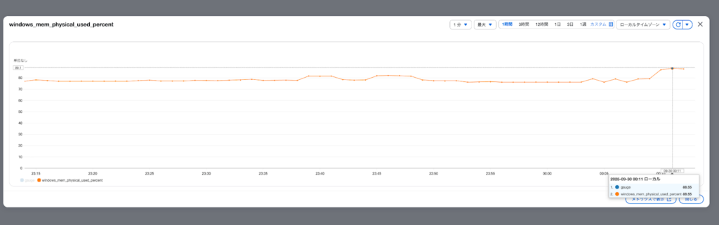 この方法を使えば、CloudWatch標準メトリクスでは得られない「物理メモリの使用率」をダッシュボードに表示でき、さらにインスタンスタイプを変更しても自動的に正しい利用率を取得できます。