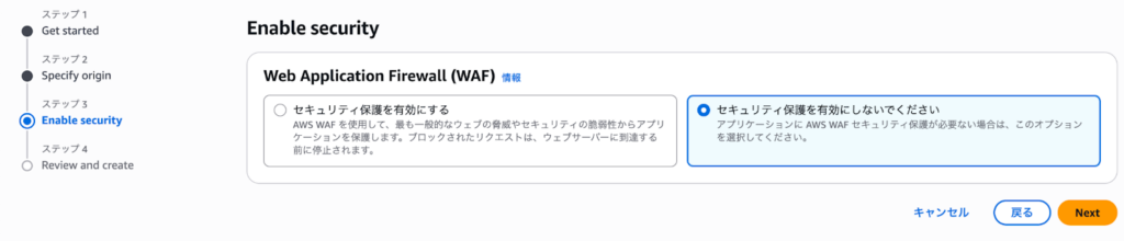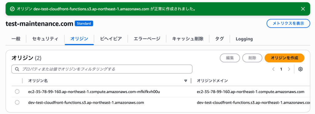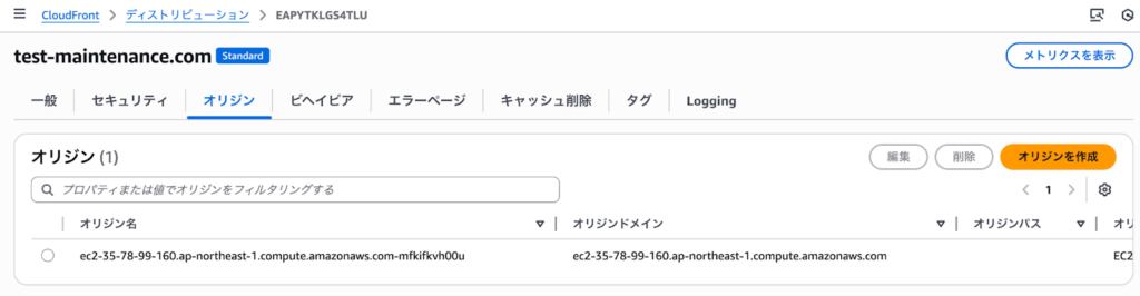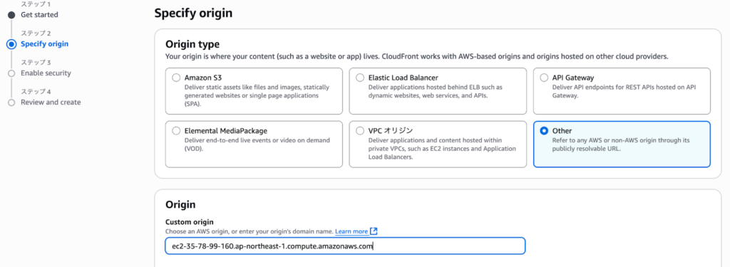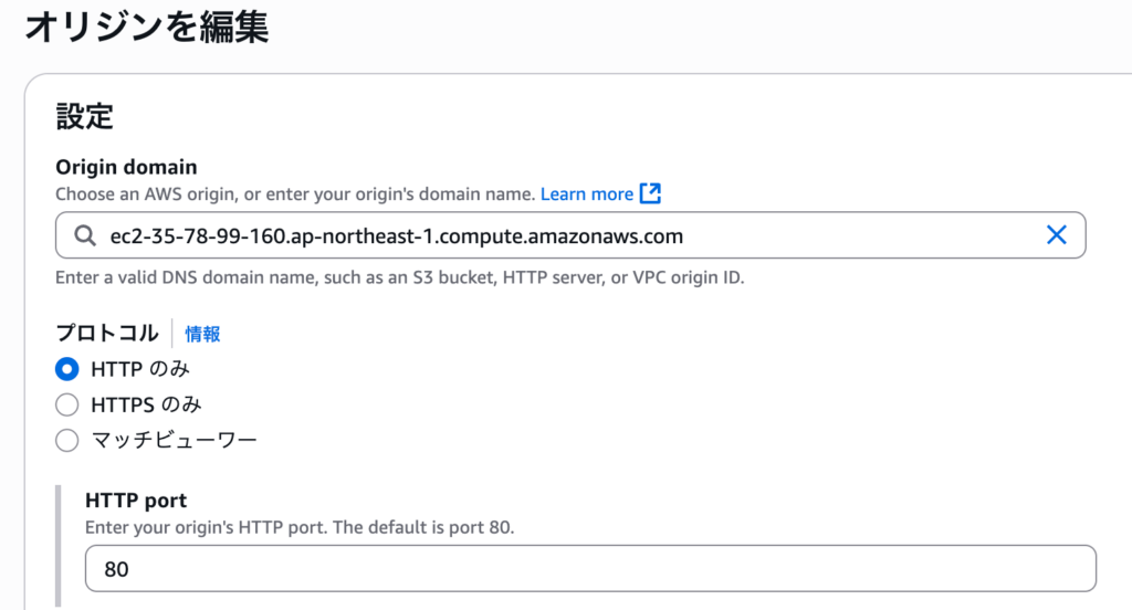 オリジンに EC2 のパブリック DNS 名を入力してください。