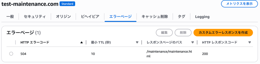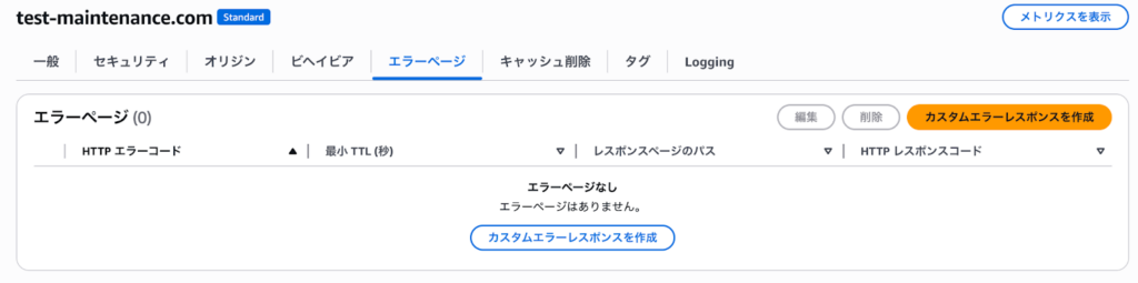最後にメンテナンス画面を表示するための、カスタムエラーレスポンスを作成します。