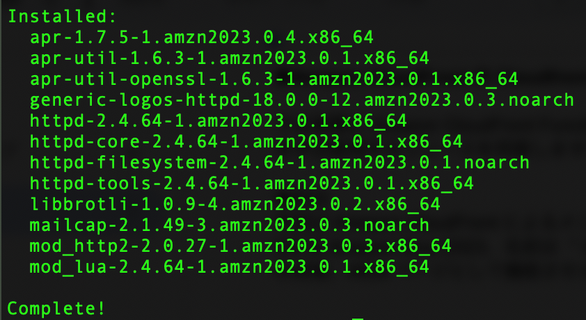作成後、WEB ページとして機能させるために EC2 に ssh 接続し、Apatch をインストールしてください。