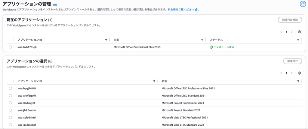 バンドルに Office 2019 を含む Windows Server 2019 以降のバンドルを使用している場合は、Office 2019 との関連付けを解除し、Office 2021 をインストール / 関連付けることができます。Windows Server 2019 以降のバンドルを使用していない場合は、まず Office が含まれていない Windows Server 2019 以降を搭載したパブリックバンドルまたはカスタム WorkSpaces バンドルに移行してから、WorkSpaces のアプリケーションの管理機能を使用して Microsoft Office 2021 を追加する必要があります。対象の Microsoft 365 ライセンスをお持ちの場合は、WorkSpaces に Microsoft 365 アプリをインストールしてアクティベーションできます [3]。Microsoft は、Windows Server 2019 またはそれ以前のバージョンでの Microsoft 365 のサポートも 2025 年 10 月 14 日に終了することにご注意ください。WorkSpaces で Microsoft 365 を使用する場合は、Windows Server 2022 または Windows 11 のバンドルを使用する必要があります。