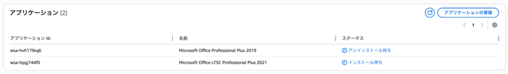 3.現在のアプリケーション内の Office 2019 のステータスが「アンインストールのデプロイ待ち」と表示されていることを確認します。